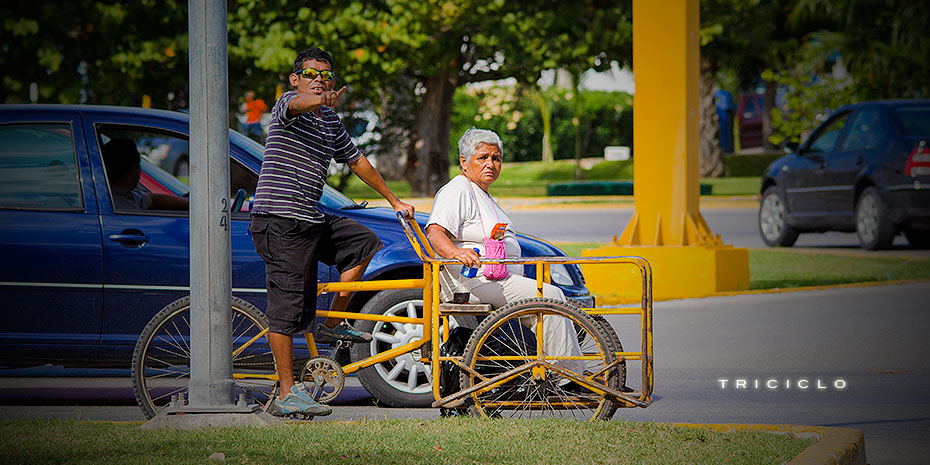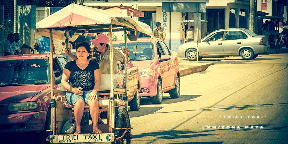 Una mujer viaja a bordo de un trici-taxi en José María Morelos, en la zona Maya de Quintana Roo; este es uno de los grandes contrastes, pues el desarrollo urbanístico y económico no ha sido parejo en todo el estado, haciéndose más grande las distancias entre las áreas turísticas y las todavía semi-rurales.