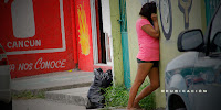 calle de acceso al Marcado 28, en el centro de Cancún. Por las mañanas es común