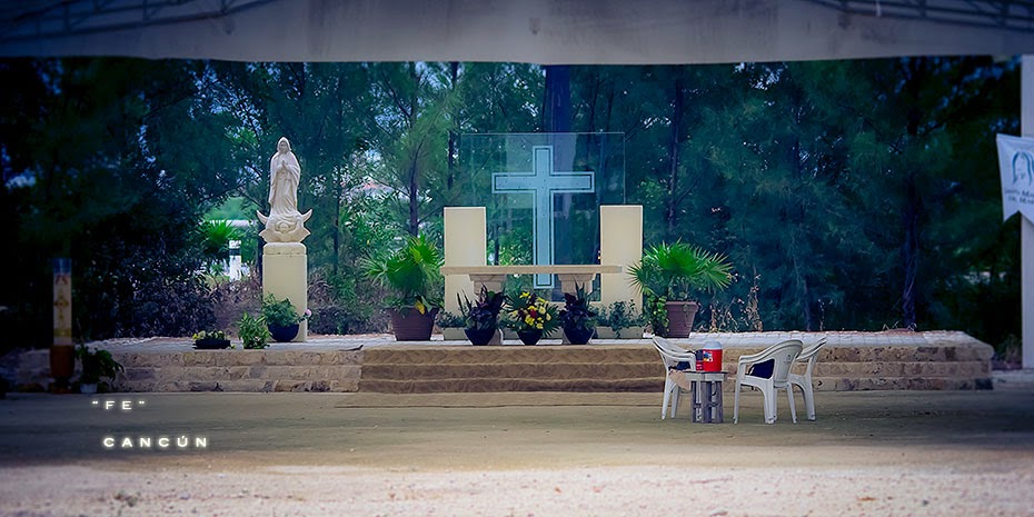 Un púlpito en el que sobresale la figura de la Virgen de Guadalupe, es la base de una Iglesia que se construye en el “Malecón Cancún”, la zona de reciente creación que se convertirá en una área comercial-habitacional en el futuro mediato.