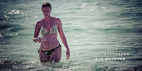 Una mujer está “checando” mensajes en su celular, en una playa de Cancún. Pese al disfrute del Sol, el Mar y la Arena, los turistas parecen no estar decididos a perder comunicación con sus contactos.