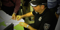 Policías de Cancún toman la foto del recuerdo a jóvenes que posan en el gigantesco árbol de Navidad, instalado en la explanada del Palacio del Ayuntamiento de Benito Juárez; en un acto espontáneo, estos chicos dieron a los uniformados que resguardan la sede municipal, sus teléfonos celulares para que con ellos les tomaran las fotografías, resultando una imagen con espíritu navideño.