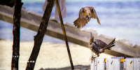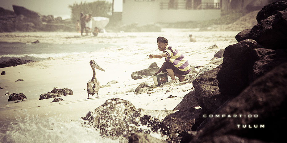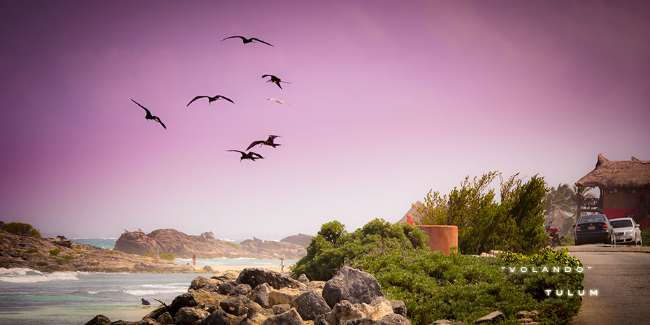 Fragatas sobrevuelan la bahía de Cozumel en busca de alimento…para los turistas, que siempre están ávidos de novedades, este espectáculo, que se desarrolla apenas a unos metros de distancia de la calle, también representa un atractivo.