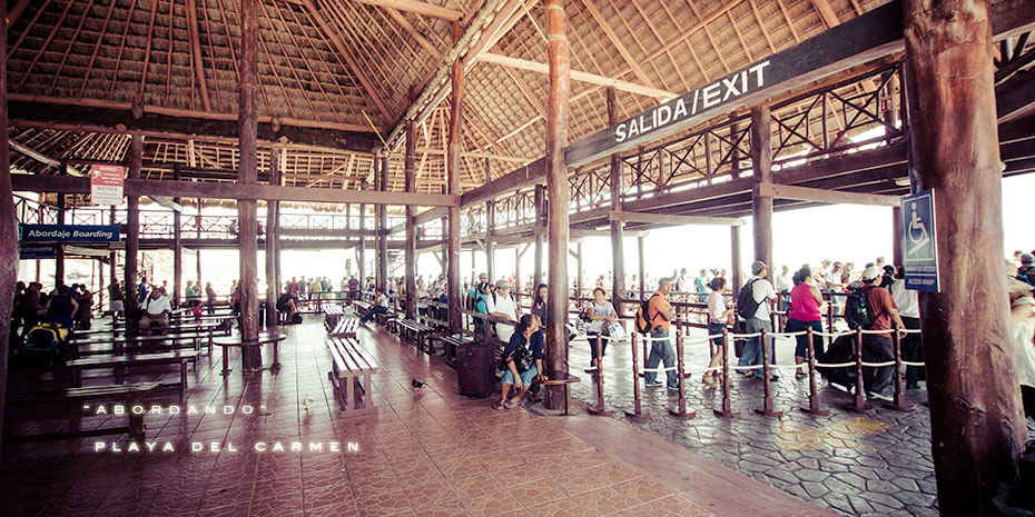 Turistas se toman fotos en el “Mirador” de Playa Delfines, en Cancún. Nótese el espectacular color azul turquesa del Mar Caribe, que en este espacio público tiene su mejor “look”, este a su vez el mejor de los muchos atractivos de este lugar.