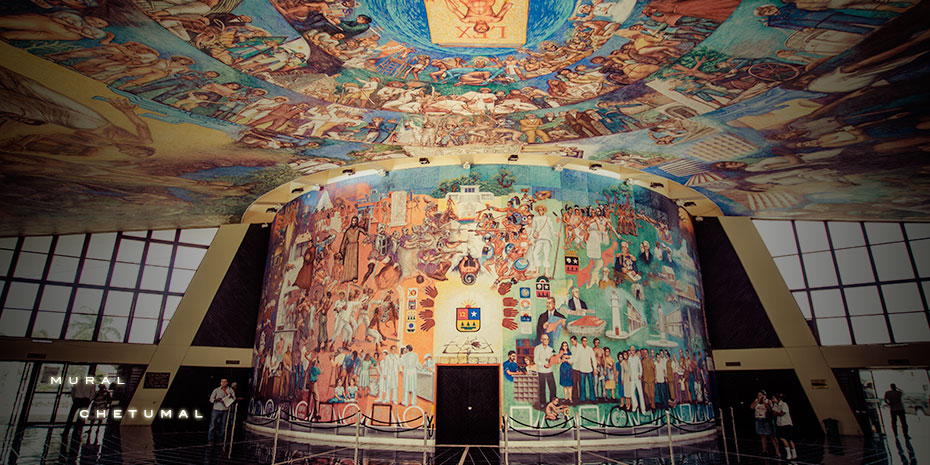 Una imagen del mural que muestra la historia de Quintana Roo, a propósito del XXXIX Aniversario de la conversión de Territorio a Estado Libre y Soberano, que se celebra este 8 de Octubre 2013. Esta magna obra se encuentra en el interior del edificio del Congreso local.