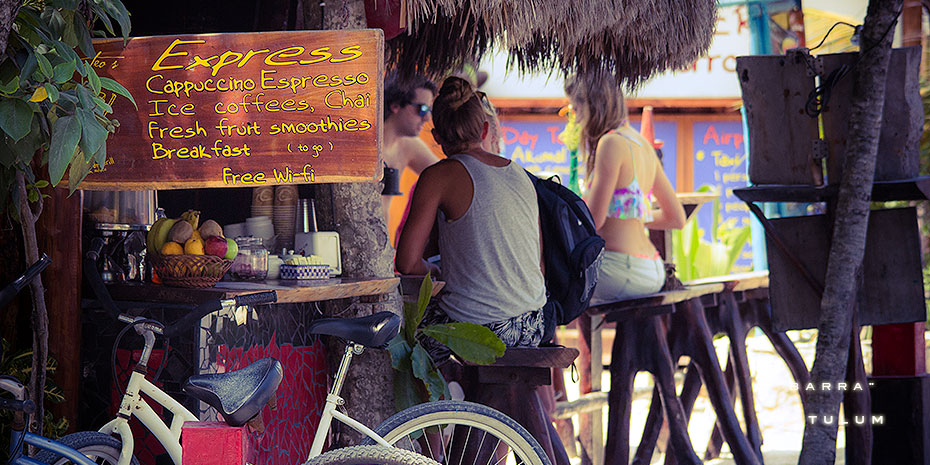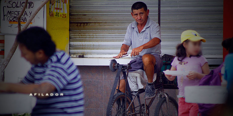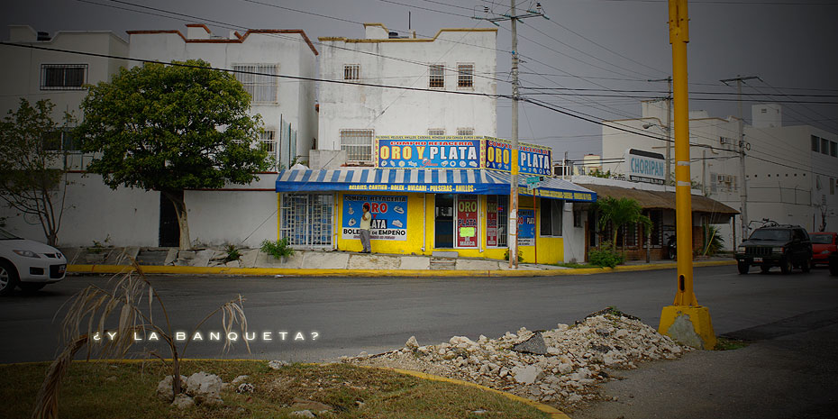 de las herramientas y de sus labores, en una rúa de Tulum. En todas las