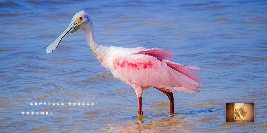 Una “Espátula Rosada” deambula al aire libre en su hábitat natural en una laguna dentro de la reserva ecológica “Punta Sur”, en Cozumel; esta ave, muy conocida en países de Sudamérica, como Colombia, se puede ver disecada en el “Museo de Cozumel”, tal como se aprecia en el recuadro, pero en esta ocasión la lente de EQR logró captar a este ejemplar vivo, nótese la característica peculiar de su pico.