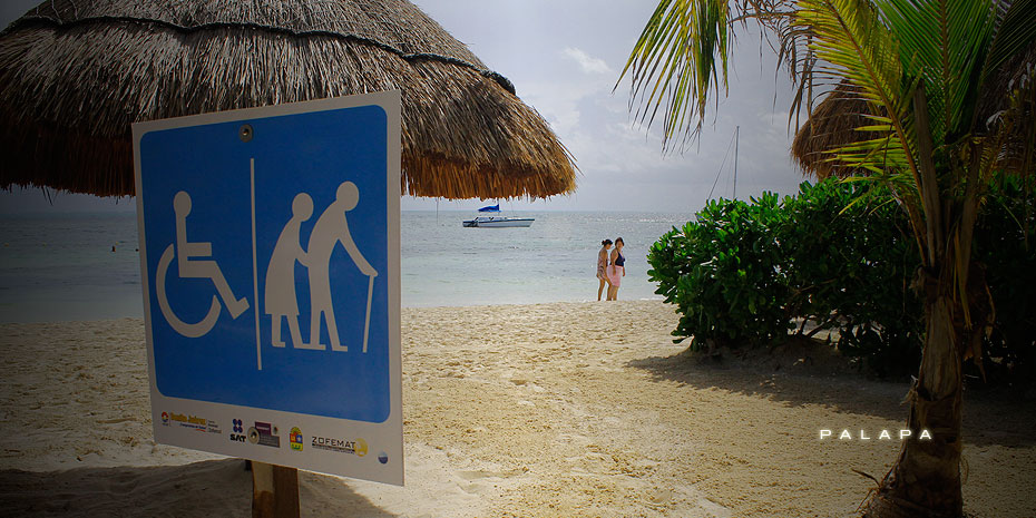 letrero indica que esta Palapa está reservada para personas discapacitadas y de