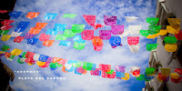 Figuras de papel recortado alusivas al Día de Muertos cuelgan de edificios en la Quintana Avenida, en Playa del Carmen; esta vía que es el principal encuentro de miles de turistas que convergen de todo el mundo, ya está lista para la celebración de esta fecha, que es atractiva y sorprendente para miles que llegados de otras latitudes no la conocen, pues difiere en muchos sentidos del clásico “Halloween”.