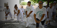 de la tercera edad están haciendo ejercicio en el IMSS de la Cobá. Dos veces