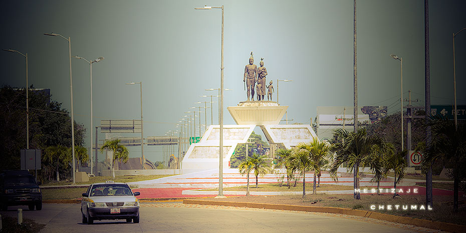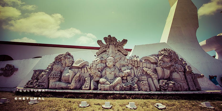 Una escultura que muestra el encuentro de dos mundos se encuentra en la parte exterior del complejo del Museo de la Cultura Maya, en Chetumal; se trata de una pieza que representa el choque de Ibéricos y Mayas, cuando los primeros llegaron a las costas de lo que hoy conocemos como Quintana Roo.