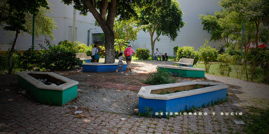 basura y un deterioro visible en este parque, atrás de el súper mercado