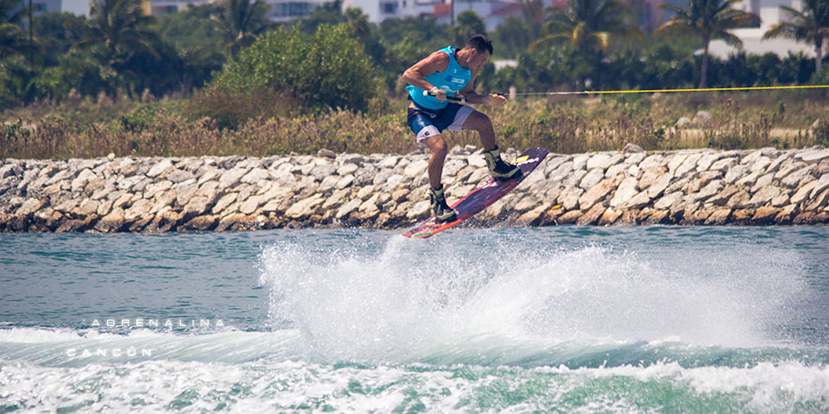 Una surfer soviética entra acción durante una competencia internacional de Jet Surf en Cancún, miles de deportistas de diversas disciplinas acuáticas llegan cada año a este polo vacacional para participar en diversos torneos, pues el turismo deportivo también es un segmento importante.