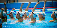 Deportistas escogen ropa durante una competencia acuática en Cancún, destino al que acuden cada año competidores de diversas disciplinas procedentes de todo el Mundo.