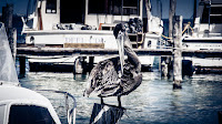 Gaviotas están atentas en un muelle en espera de poder alimentarse de las frituras y otras golosinas que comen los turistas, en una playa de Cancún, estas aves han descubierto que acercándose a los seres humanos es posible recibir de ellos algo de alimento.
