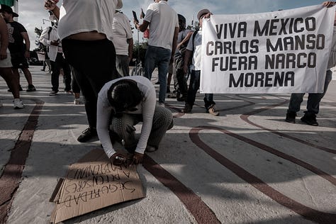 Alrededor de 400 personas —principalmente adultos y adultos mayores, aunque abierta a toda la ciudadanía— iniciaron la marcha a las 3:30 de la tarde desde dos puntos: la Glorieta “El Ceviche” y el Parque “El Crucero”. El contingente avanzó por la Avenida Tulum hacia el Palacio Municipal de Benito Juárez, lanzando consignas como “México escucha, esta es tu lucha”, “Fuera Morena”, “Fuera Mara”, “Fuera Claudia” y “Carlos escucha, esta es tu lucha”. Al llegar a la Plaza de la Reforma, representantes recalcaron la respuesta al incremento de hechos violentos, la crisis de desapariciones y el asesinato de Carlos Manzo, exigiendo medidas firmes contra corrupción e impunidad. Otros participantes pidieron la renuncia de Sheinbaum. Posteriormente, el grupo se trasladó de vuelta a la Glorieta “El Ceviche” por media hora y regresó al Palacio Municipal, donde la movilización continuaba al cierre de esta edición. Elementos de Tránsito habilitaron desvíos en avenidas aledañas, sin reportes de confrontaciones con la policía.