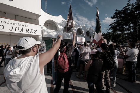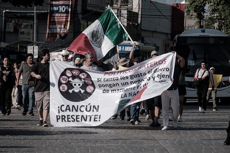 Cancún: Contingente parte de glorietas y converge en Palacio Municipal con demandas contra violencia y Morena