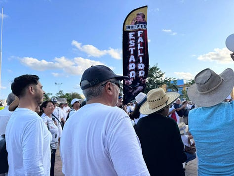 En el corazón turístico de Solidaridad, cerca de 200 manifestantes se congregaron a las 4 de la tarde en el Parque Fundadores, ataviados con sombreros de paja, playeras blancas y pancartas. Avanzaron por la Quinta Avenida, calle 8 y calle 20 hacia el antiguo Palacio Municipal y la plaza 28 de Julio, coreando “Carlos no murió, Morena lo mató”, “Fuera Morena” y “Claudia, escucha, el pueblo está en la lucha”. En el destino, demandaron justicia por la violencia y desapariciones que azotan al país, criticando la inacción de gobiernos estatales y federal. Una organizadora agradeció el respaldo de asociaciones civiles y familias, destacando que la marcha era abierta para expresar el sentir social. El contingente regresó al Parque Fundadores, donde continuaron consignas contra Morena y exhibiendo pancartas. La manifestación persistía pasadas las 6 de la tarde, sin incidentes destacados ni afectaciones mayores al tráfico en la zona.