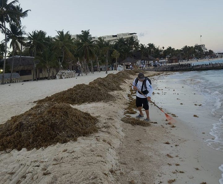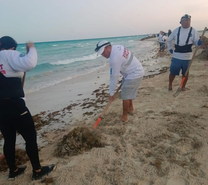 Gobierno de Isla Mujeres atiende con inmediatez recale atípico de sargazo