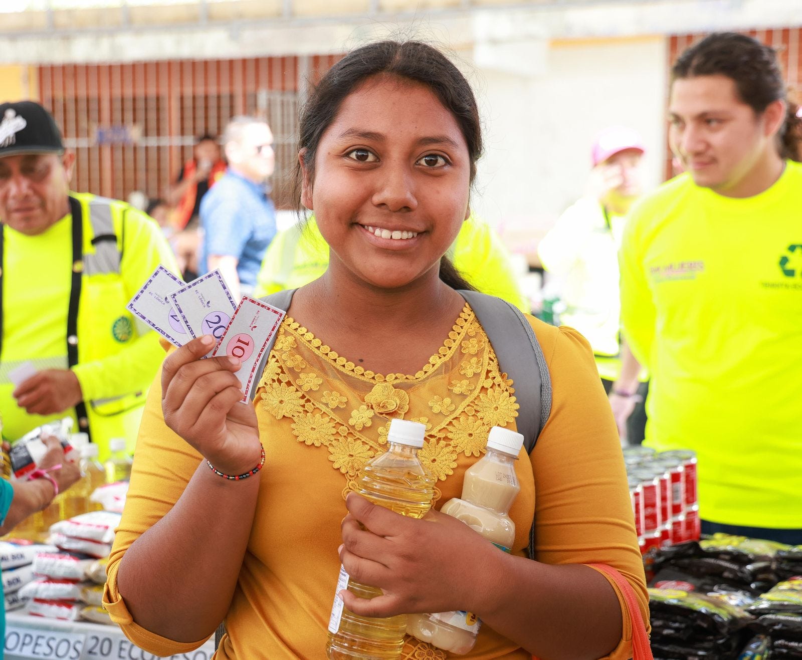 Durante esta jornada, realizada como parte de la estrategia para fomentar la cultura del reciclaje en todo el municipio, las y los ciudadanos pudieron intercambiar materiales valorizables como PET, vidrio y cartón por productos de la canasta básica, juguetes y electrodomésticos.