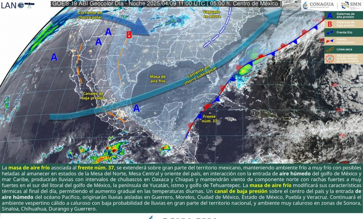 Cancún.- Continúa un sistema de alta presión sobre el Golfo de México, acompañado de una masa de aire polar que impulsó al frente frío número 37 y que se mantiene encima de la Península de Yucatán y Quintana Roo.