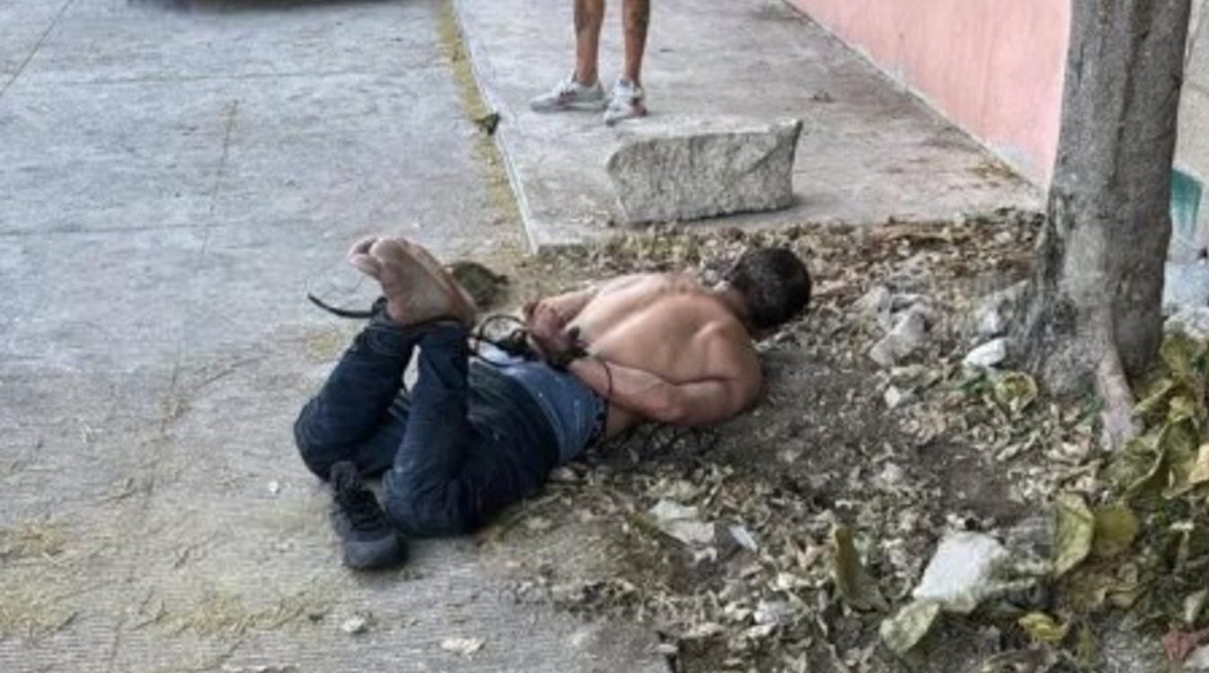 Vecinos intervinieron para auxiliar a la víctima, y cuando el agresor intentó huir, lo persiguieron, sometieron y amarraron en el suelo.