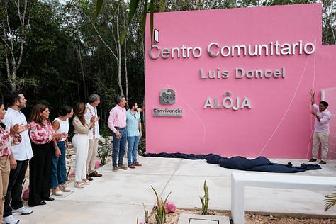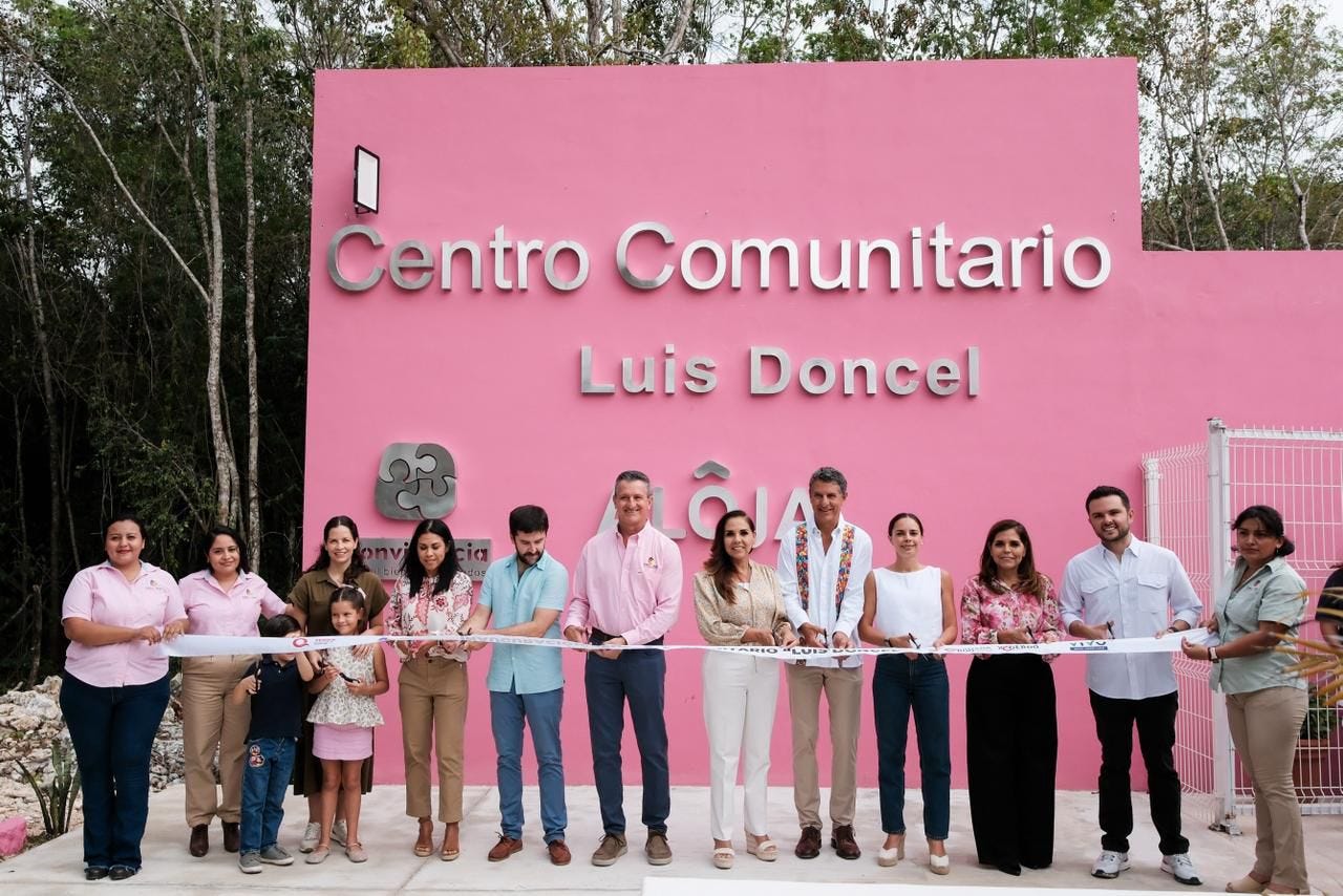 Cancún.- Para fortalecer las acciones en favor de la comunidad, en la construcción de paz, la gobernadora Mara Lezama Espinosa y directivos de la asociación civil Entorno y Convivencia inauguraron el Centro Comunitario “Luis Doncel”, en el fraccionamiento Aloja, en la Región 246 de Cancún.