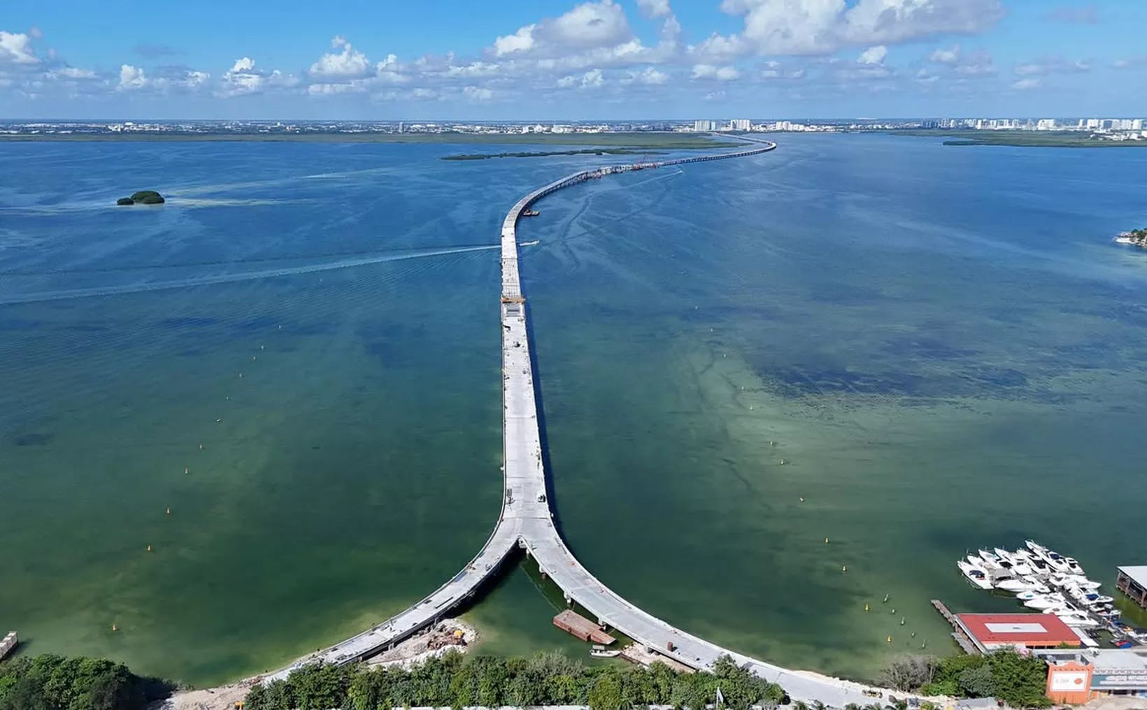 Esta infraestructura, de más de 8.8 km (con entronques supera los 11 km), conectará el centro de Cancún con la zona hotelera, reducirá hasta 45 minutos los tiempos de traslado, mejorará la seguridad vial y beneficiará a residentes y millones de turistas al ofrecer un tránsito más fluido y gratuito.