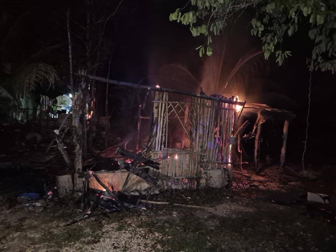 Felipe Carrillo Puerto.— La noche de este martes 14 de abril de 2026, alrededor de las 20:16 horas, se registró un incendio que consumió por completo una palapa ubicada sobre la carretera Puerta al Mar, a la altura del kilómetro 1.5, en el municipio de Felipe Carrillo Puerto.