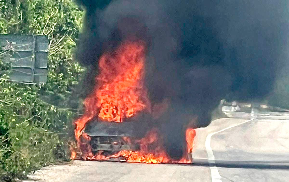El incendio vehicular estremeció la carretera federal 307, en el tramo Chetumal-Bacalar, a escasos 100 metros del icónico Cenote Azul
