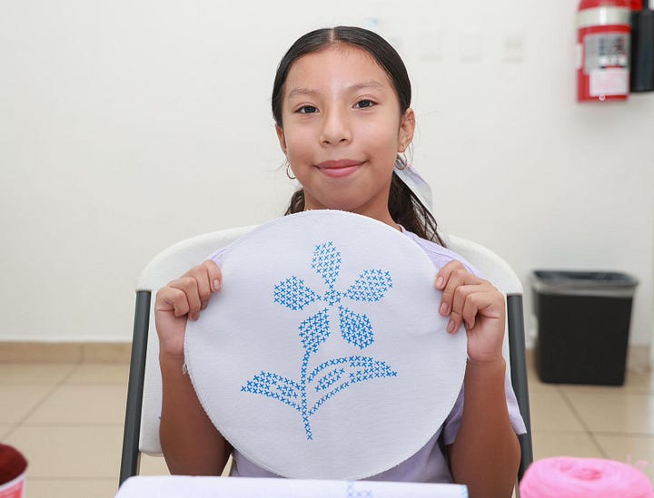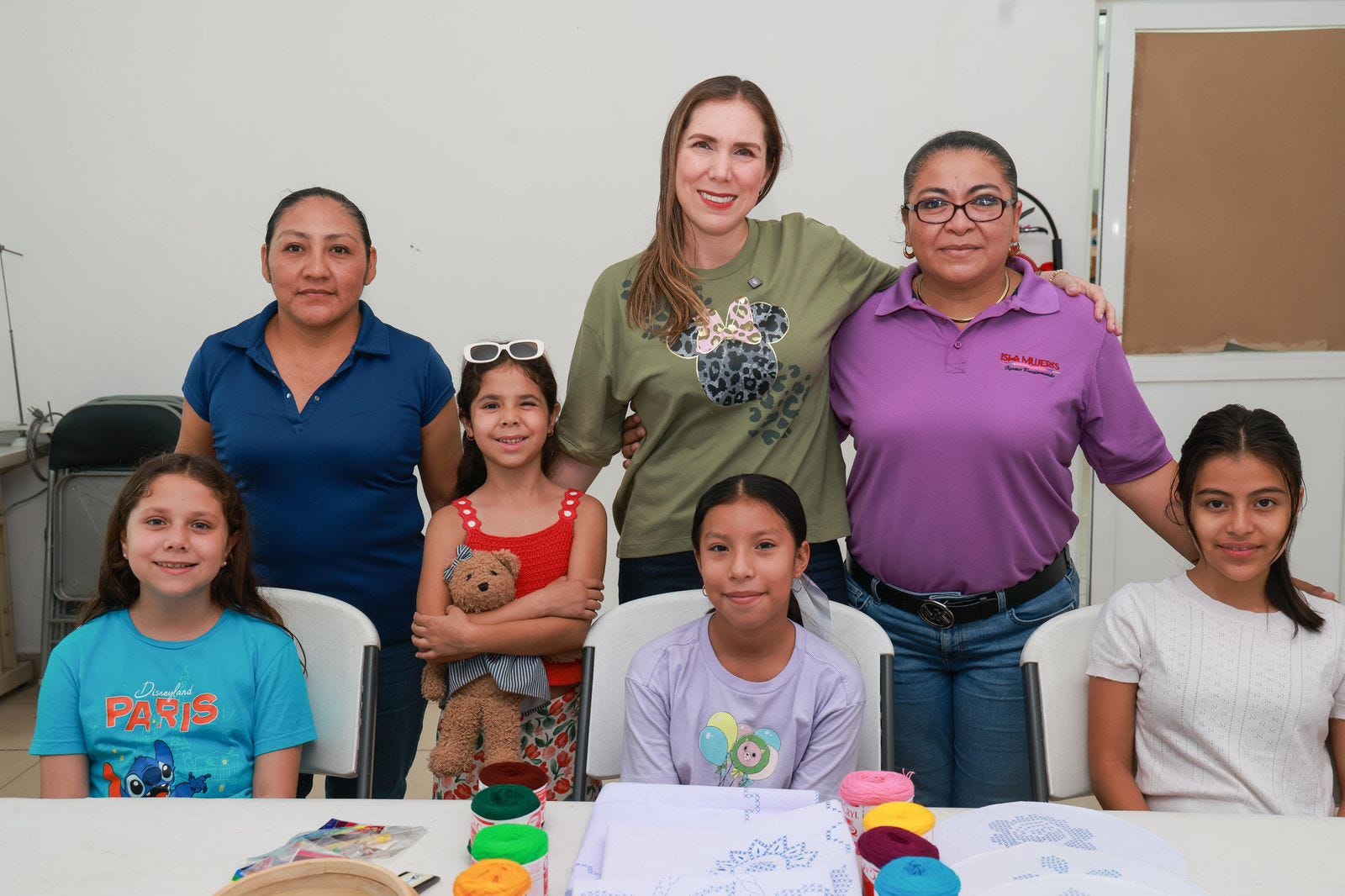 Durante el arranque de actividades, la Presidenta Municipal, Atenea Gómez Ricalde, visitó a las niñas y niños que participan en los talleres de Repostería y Elaboración de Servilletas Bordadas a Mano, donde convivió con ellas y ellos, reconociendo su entusiasmo y dedicación.