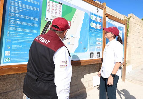 Durante su estancia también constató la atención que brinda el personal de ZOFEMAT, quienes orientan a visitantes sobre los servicios disponibles, así como el cuidado del entorno, recordando que las playas son espacios libres de humo y que está prohibido ingresar con envases de vidrio.