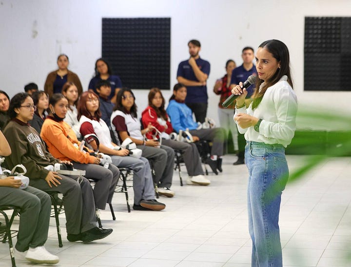 Cancún.- La Presidenta Municipal, Ana Paty Peralta, encabezó el programa “Yo no soy cómplice” etapa de realidad virtual “Vive Libre” que realiza el Instituto Municipal Contra las Adicciones (IMCA), dirigido a estudiantes del Centro de Bachillerato Tecnológico Industrial y de Servicios (CBTIS 111), con el objetivo de prevenir que se refugien en adicciones, y vivan su entorno positivo y saludable.