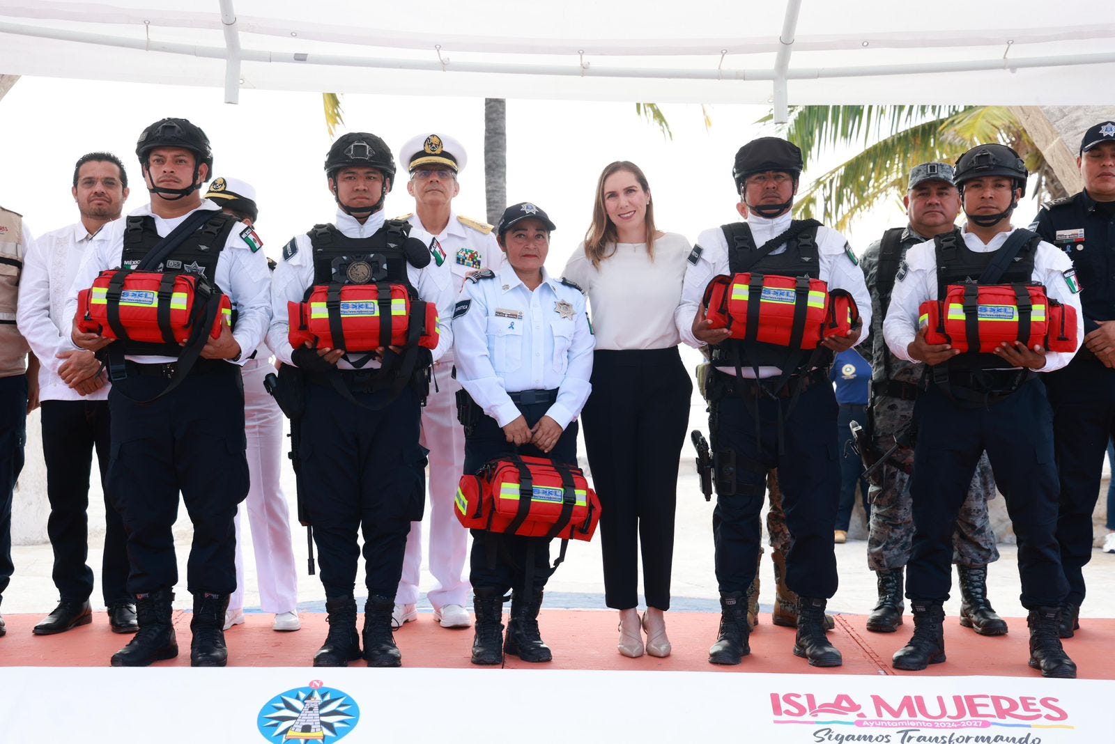 Durante el acto protocolario, la alcaldesa isleña entregó kits de emergencia y radios de última tecnología, con la finalidad de que las y los elementos cuenten con las herramientas suficientes para actuar con inmediatez en caso de registrarse alguna eventualidad.