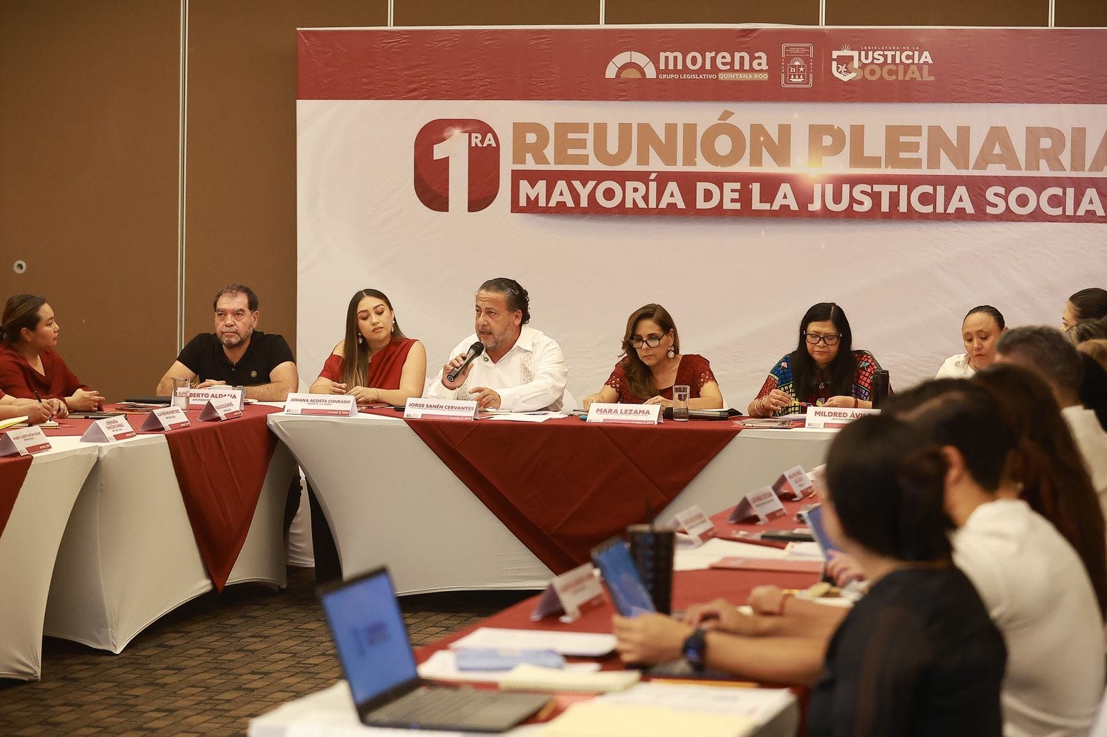 La plenaria reunió a diputadas y diputados de morena con integrantes del Gabinete Estatal, legisladoras y legisladores federales, así como con la Presidenta Estatal de morena Johana Acosta. En cada mesa de trabajo se expusieron avances y propuestas en materia de gobernabilidad, salud pública, educación, cultura, juventudes, derechos de las mujeres, desarrollo urbano y proyectos legislativos federales, con el fin de articular y fortalecer las actividades legislativas de morena en el Congreso del Estado de Quintana Roo.