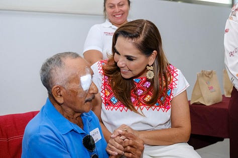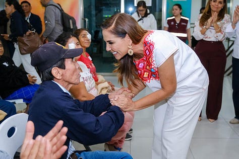 En el hospital del IMSS-Bienestar, en la zona insular de Isla Mujeres, y acompañada por la presidenta honoraria del Sistema DIF Quintana Roo Verónica Lezama, la titular del Ejecutivo destacó que este apoyo conjunto significa dignidad para las y los pacientes que quieren recuperar la vista, no perderla.