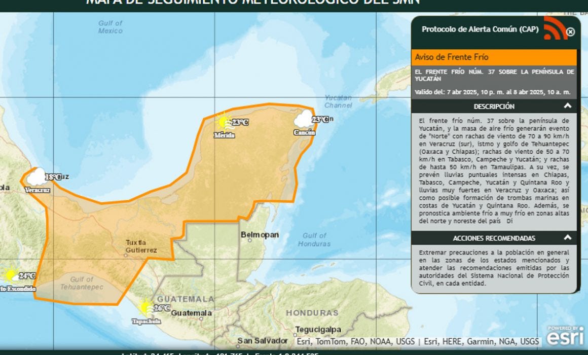 Frente frío número 37 y la masa de aire continental polar provocarán descenso de temperatura sobre la península de Yucatán y el estado de Quintana Roo