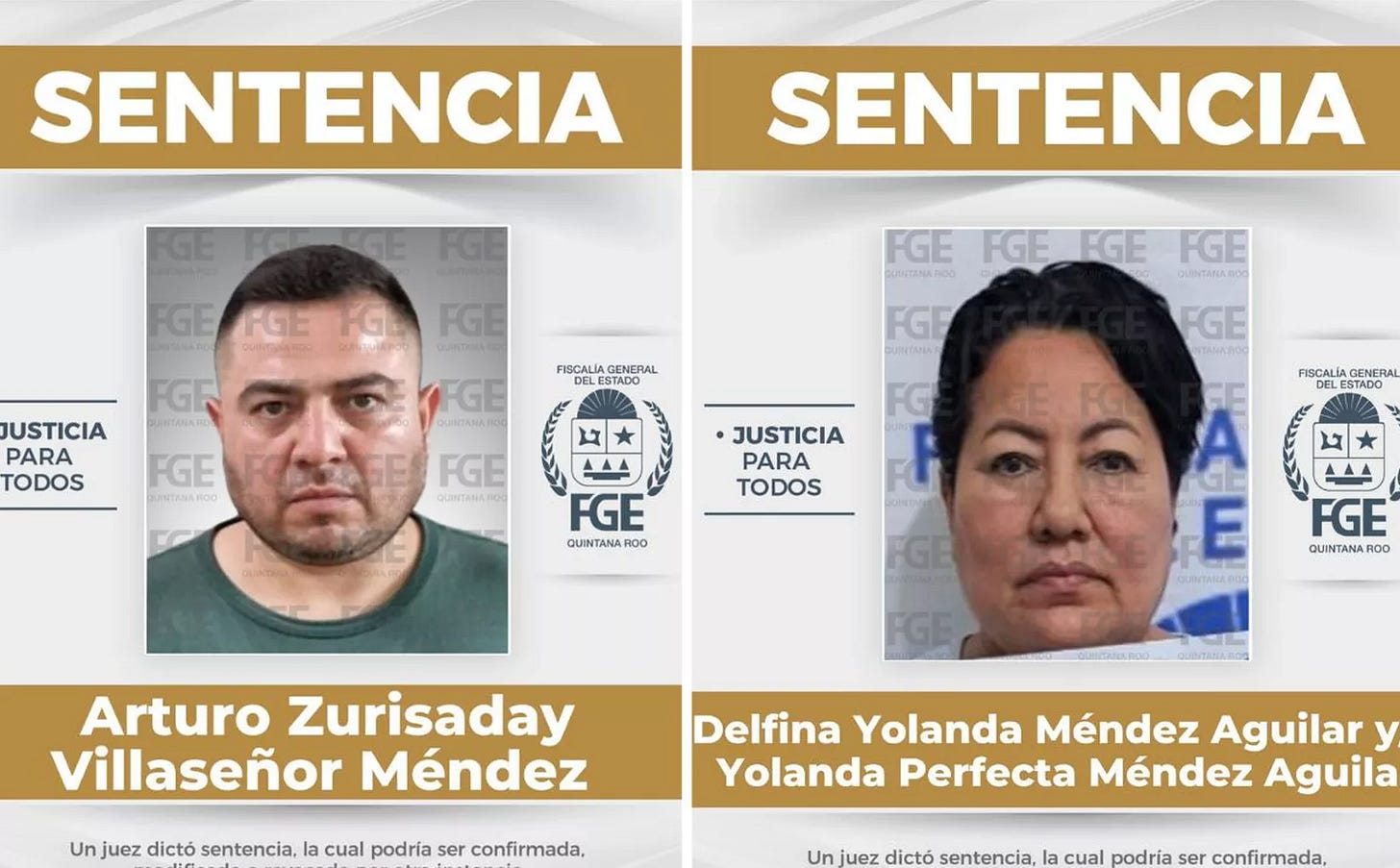 Cancún.— Tras un proceso judicial con pruebas contundentes, la Fiscalía General del Estado (FGE) de Quintana Roo logró una sentencia condenatoria de 25 años de prisión contra Arturo Zurisaday Villaseñor Méndez, alias «El Zuri», y su madre, Delfina Yolanda Méndez Aguilar, conocida como «La Güera Yolanda».