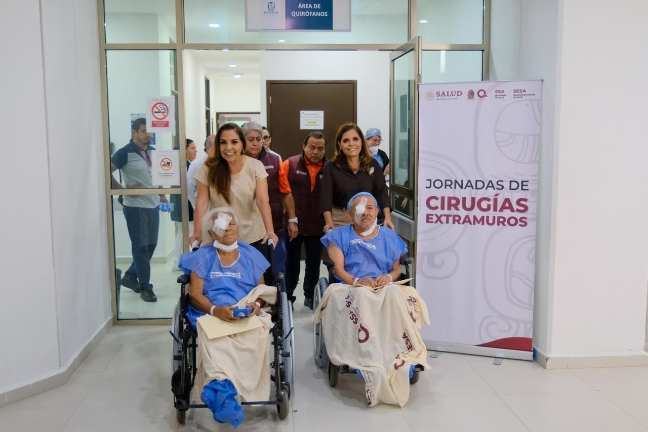Cancún.- La gobernadora Mara Lezama Espinosa y la presidenta honoraria del Sistema DIF Quintana Roo, Verónica Lezama, encabezaron un recorrido en el hospital “Jesús Kumate Rodríguez”, donde se realiza la cuarta jornada de cirugías de cataratas 2026 para transformarle la vida a pacientes de 9 municipios, al recuperar la visión.