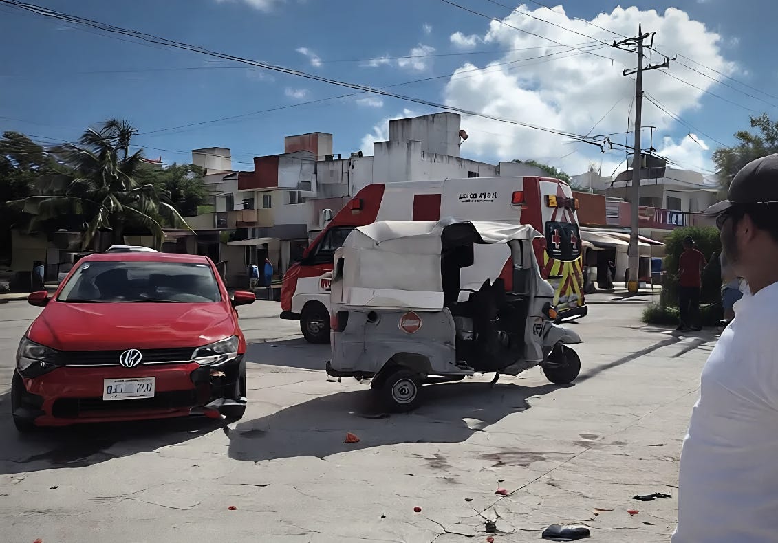 Cancún.— Cuatro personas, incluyendo dos menores, sufrieron heridas este domingo por la mañana tras la volcadura de un mototaxi que fue chocado por un auto particular en el fraccionamiento Paseos Kabah. El siniestro tuvo lugar cerca de las 8:30 horas en la intersección de Cecilio Chi y Gonzalo Guerrero. Testigos indicaron que el operador del mototaxi omitió el alto obligatorio y, al tratar de cruzar la avenida principal, fue colisionado por un Volkswagen rojo que circulaba con derecho de vía.