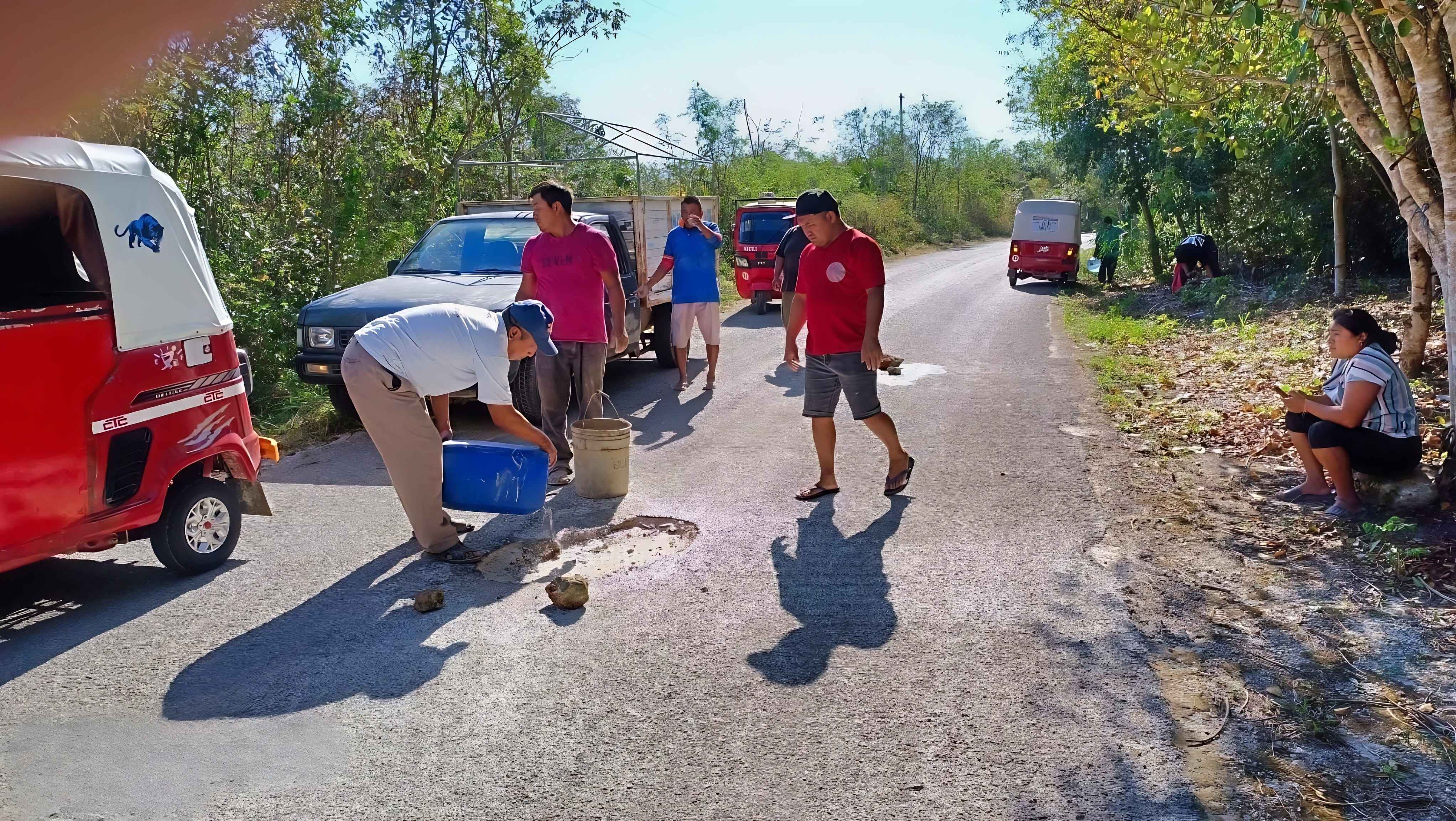 La iniciativa reunió a miembros de los sindicatos CTC, FATUQROO y FOUM, junto con vecinos y el subdelegado de Tixcacal, Juan Ek Cituk. Divididos en grupos para no interrumpir el tráfico, los voluntarios cubrieron dos kilómetros del tramo, bacheando con materiales improvisados y cortando la maleza que invadía la vía. La escena, aunque inspiradora, también es un recordatorio de las carencias estructurales en la región: sin maquinaria adecuada ni recursos oficiales, el trabajo dependió enteramente del esfuerzo humano.