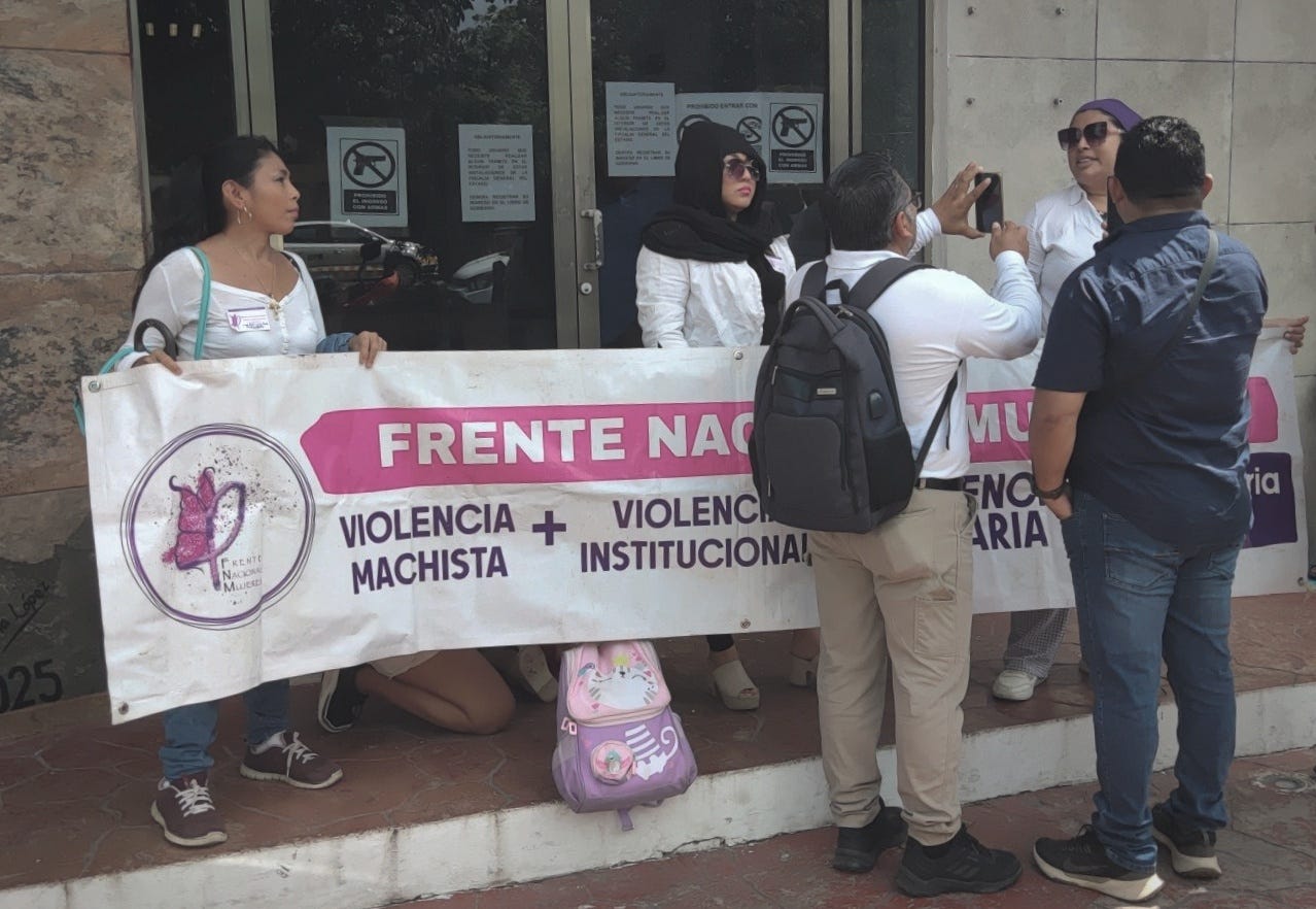 Chetumal.— El Frente Nacional Mujeres (FNM) se manifestó el martes en la Vicefiscalía de Justicia Distrito Sur debido a la falta de avances en la judicialización y el deslinde de responsabilidades en casos de violencia vicaria. Según la organización, existen 26 casos pendientes, algunos con más de cuatro años sin resolución.