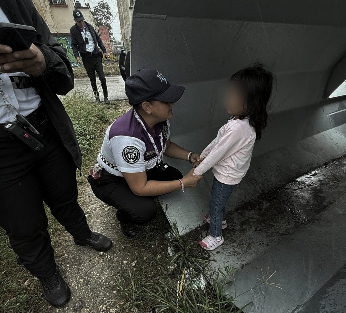 Tras una valoración inicial, la niña —vestida con sudadera rosa y pantalón de mezclilla— fue trasladada a un lugar seguro. No pudo dar información clara sobre sus padres o domicilio.