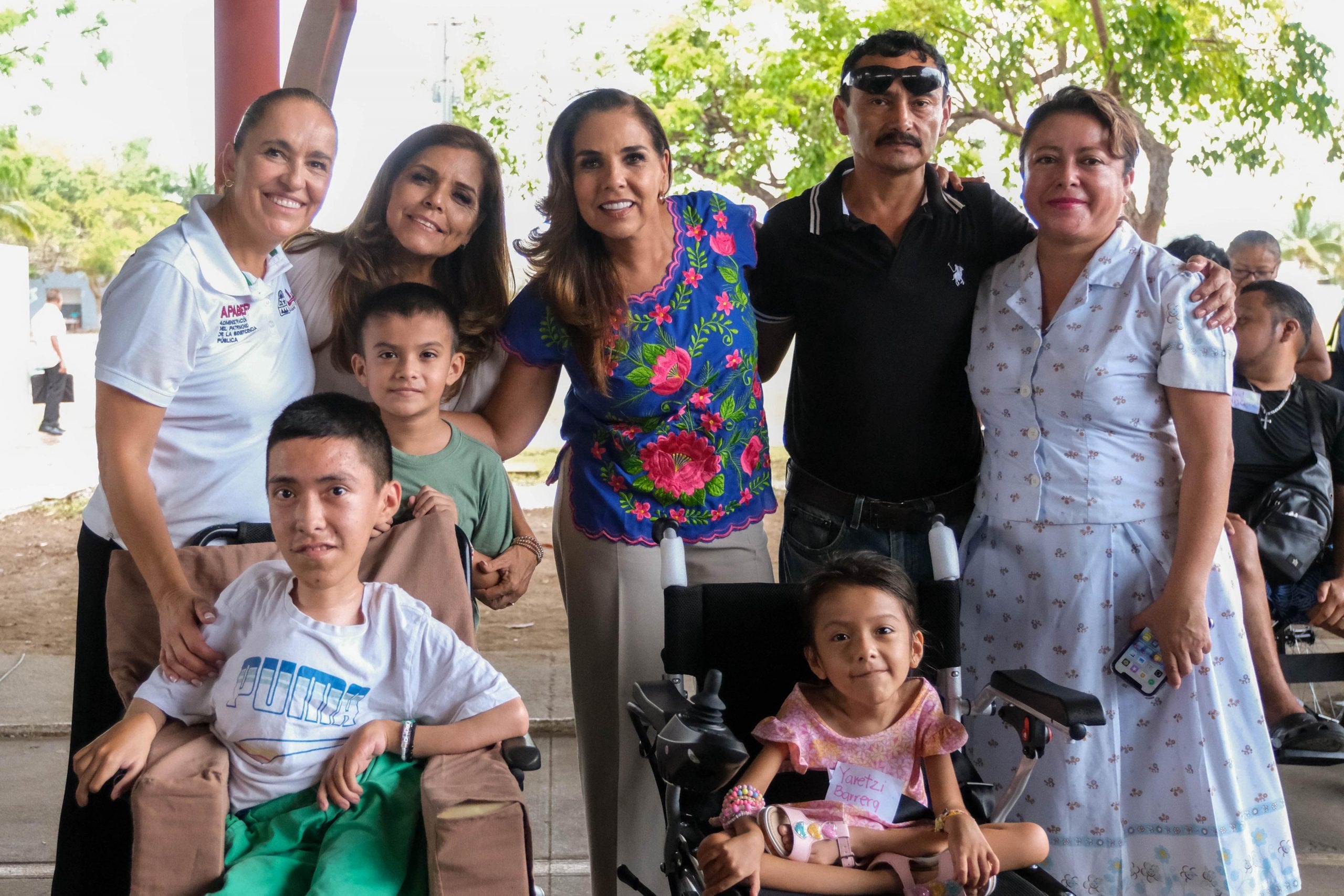 “Cada entrega transforma una vida, recuperar la movilidad es recuperar la alegría, la autonomía y con la posibilidad de vivir con dignidad” expresó la gobernadora de Quintana Roo junto a los beneficiarios, Enzo, quien recibió una silla PCI; Cristina, Yaretzi y Ángel, con sus sillas eléctricas; y Davisa, José, Francisca, Arabel y Diego, con sillas estándar.