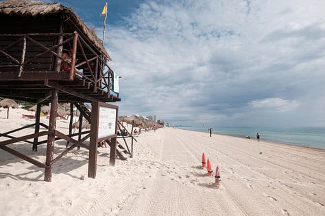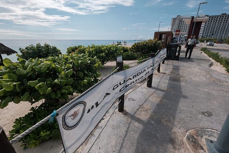 Espectacular Playa Delfines este primer día de Octubre, luego de la temporada de sargazo que está agonizando. La playa está lista para recibir a los vacacionistas del invierno. Es momento de regresar al mar. El clima ideal. Trabajadores municipales mantienen las playas limpias, guardias nacionales hacen sus rondines, mientras los turistas —aunque pocos– van llegando a disfrutar de las playas.