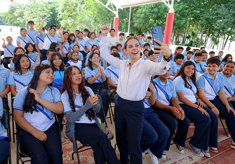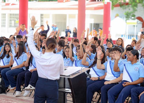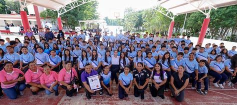 En la secundaria general “8 de Marzo” en la Supermanzana 249, Ana Paty Peralta dialogó con los adolescentes y les pidió que abran sus sentidos para adquirir tres superpoderes como la empatía, la valentía y pertenecer a una comunidad que puede ser el ejemplo de unión y ayuda.