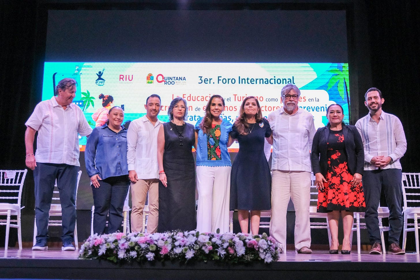Estuvieron en el presídium la presidenta honoraria del DIF Quintana Roo, Verónica Lezama Espinosa; el secretario del Ayuntamiento de Benito Juárez, Pablo Gutiérrez; el coordinador de programas ECPAT México, Fernando Viveros García; la secretaria de Gobierno, Cristina Torres Gómez; la secretaria de Educación, Elda Xix Euán, y el secretario de Turismo, Bernardo Cueto Riestra.