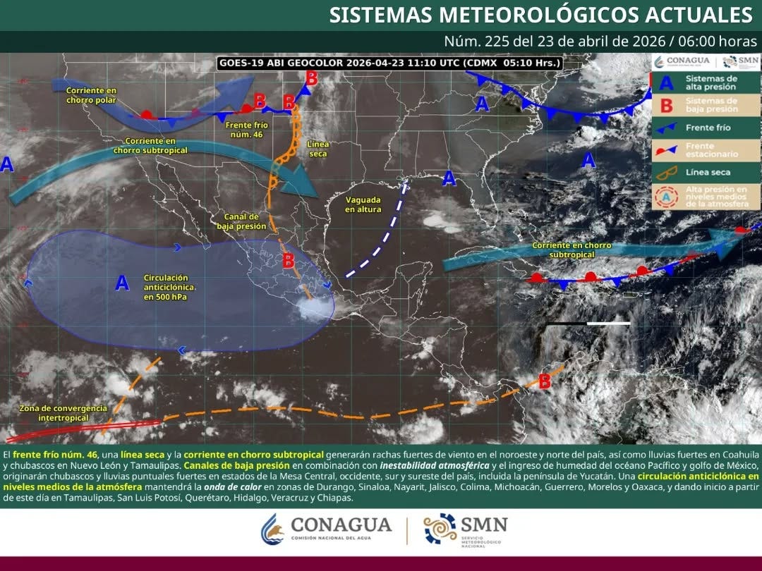 Calor extremo con sensaciones de hasta 41°C y lluvias vespertinas con actividad eléctrica marcarán la jornada de este 23 de abril de 2026 en Quintana Roo, impulsadas por un canal de baja presión