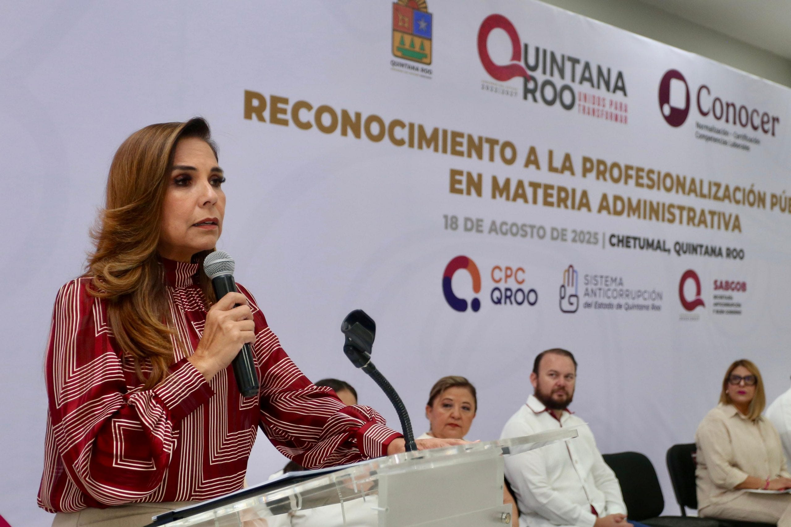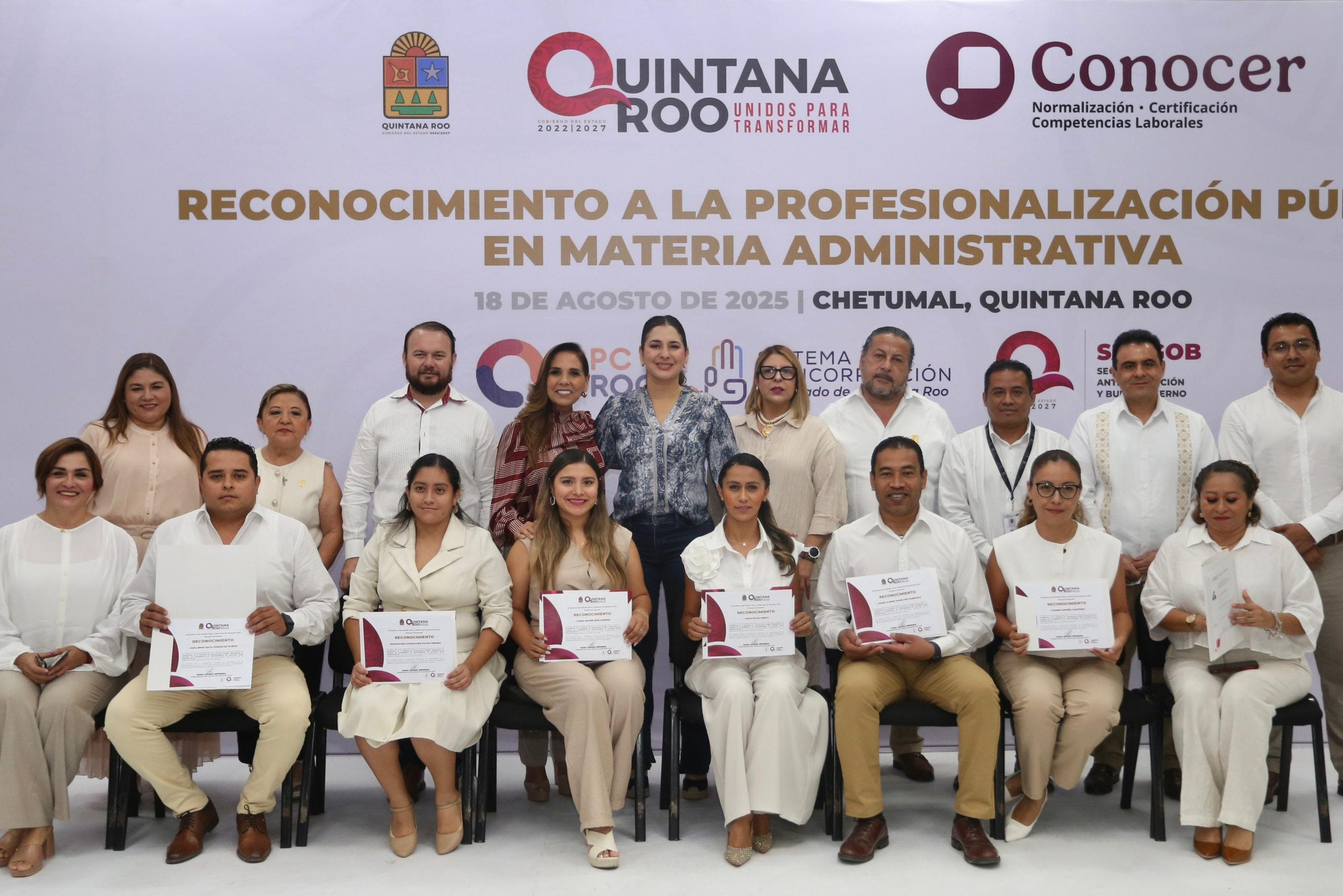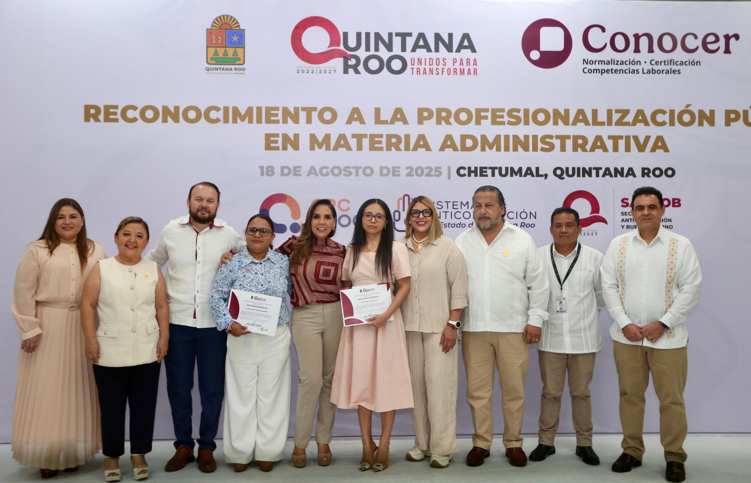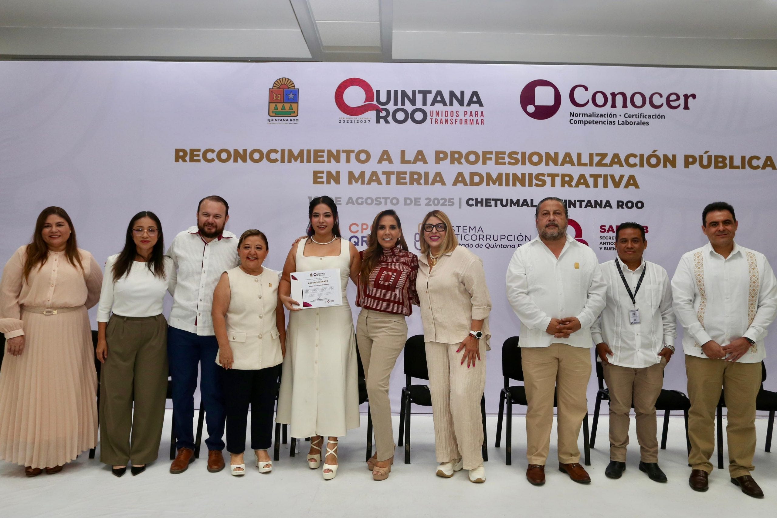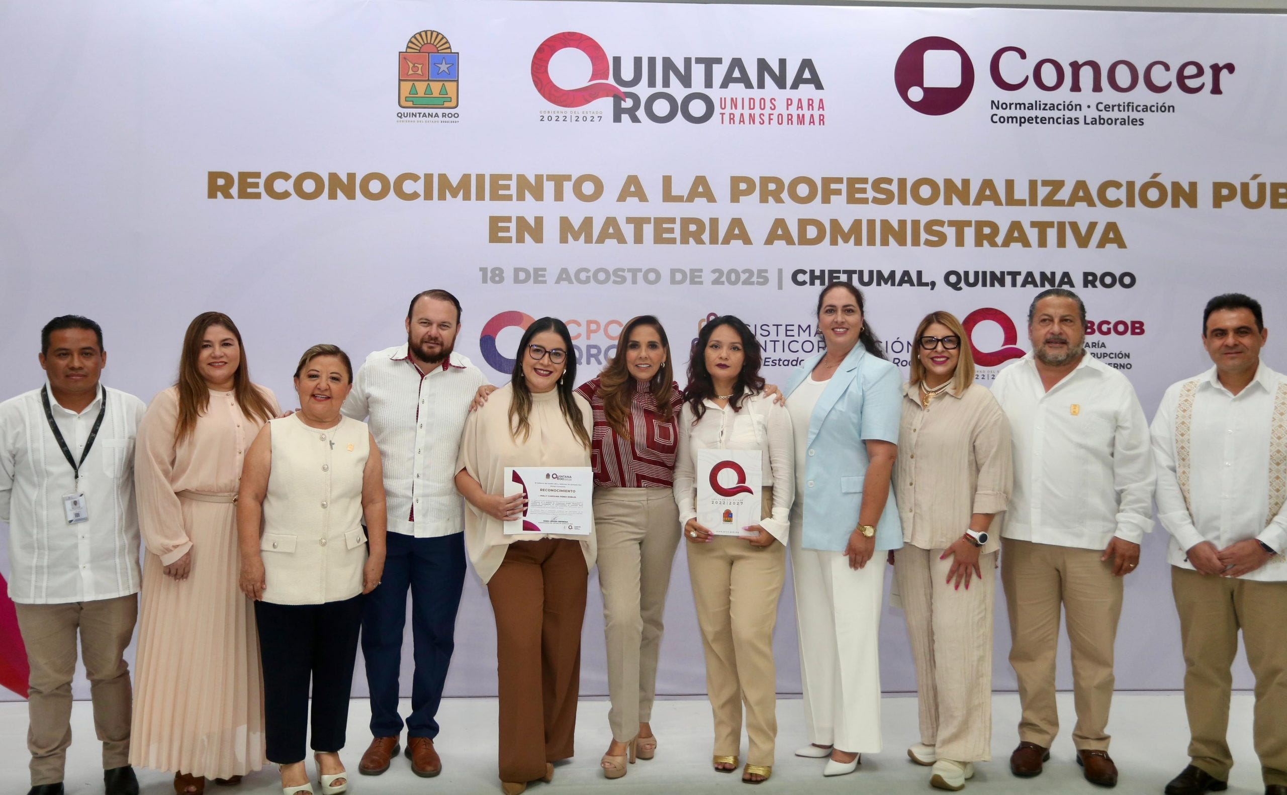 “Hoy estamos construyendo un gobierno que no miente, que no roba y que no traiciona al pueblo. Y lo hacemos con servidoras y servidores públicos que se forman, que se certifican y que ponen siempre por delante el bienestar de Quintana Roo”, explicó la titular del Ejecutivo.