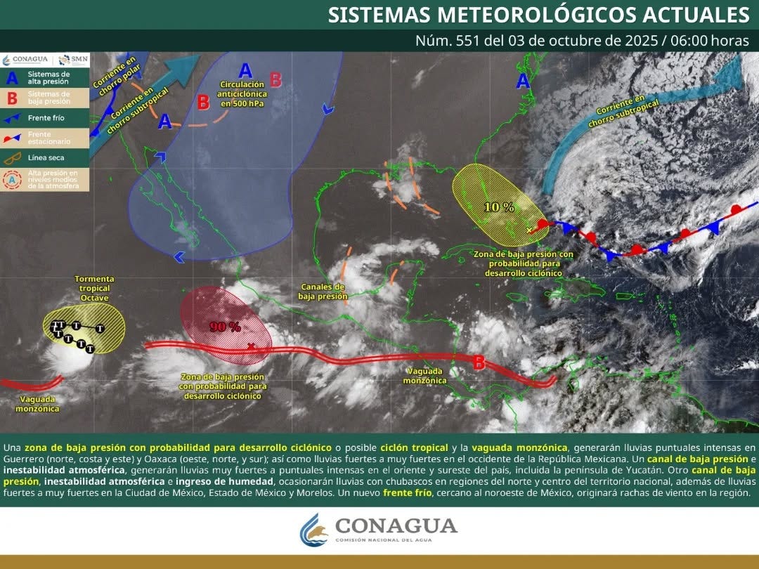 Chetumal.- ¡Quintana Roo se prepara para un viernes de contrastes! Este 3 de octubre, el estado enfrenta un día de nubes densas, lluvias intensas y un calor que no da tregua, cortesía de un canal de baja presión estacionado sobre la Península de Yucatán y la humedad que nos regala el Mar Caribe. Abran los paraguas, saquen los ventiladores y tomen nota, porque hoy el clima no será un invitado discreto.