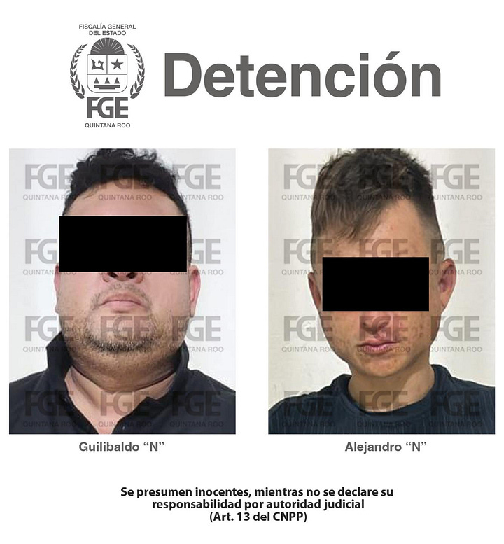 Sergio “N” y Miguel Omar “N”: detenidos afuera del Hotel Vidanta Riviera Maya realizando intercambio de dosis; se les aseguraron dos taxis y dos celulares.